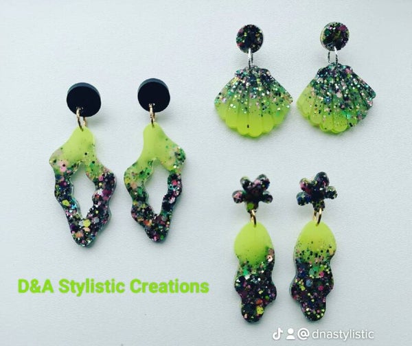 Speciaal ontworpen glitters van Glitter Queen verwerkt in Neon en RVS gouden onderdelen.