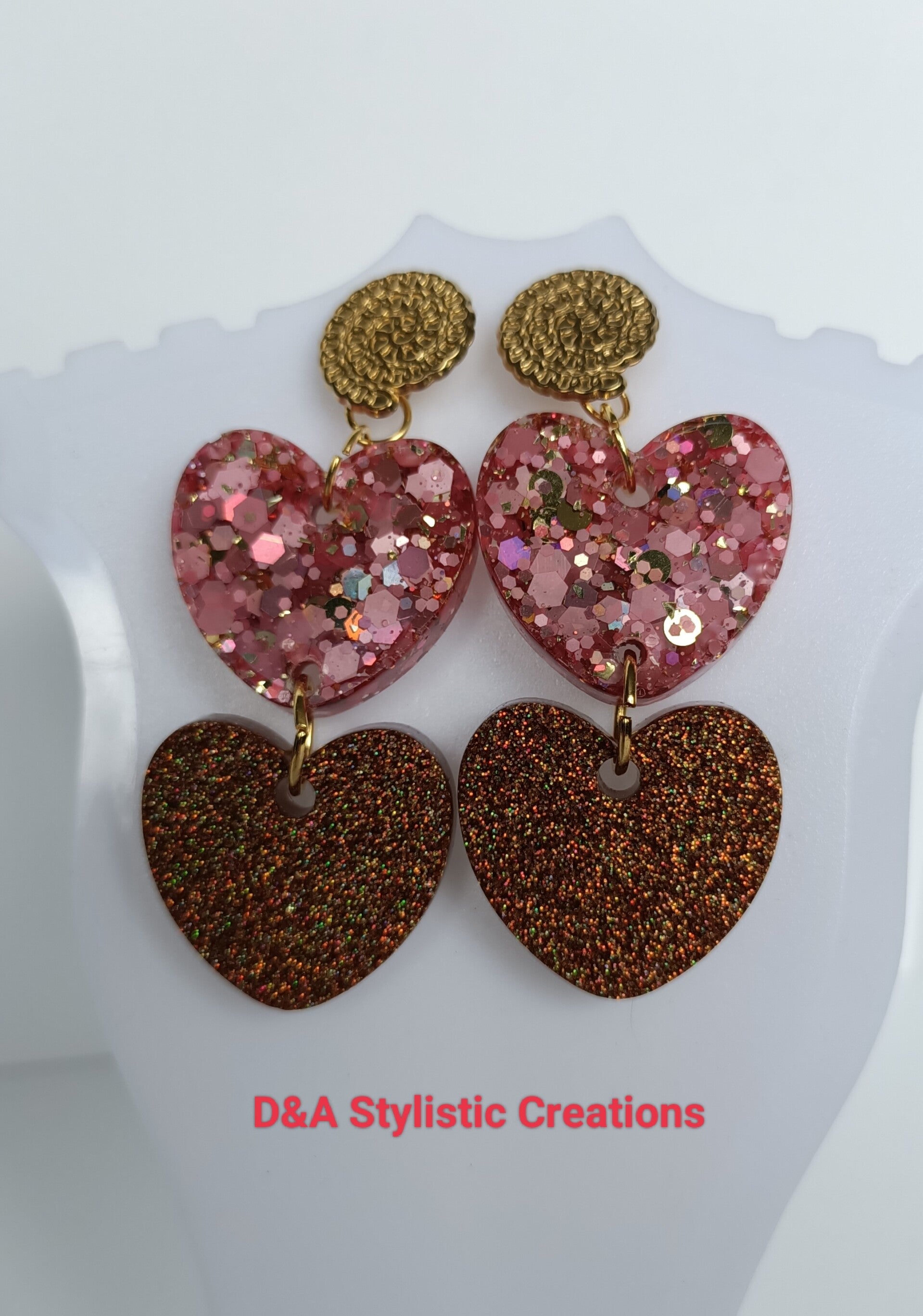 Prachtige oorbellen gemaakt van epoxy en hoog kwaliteit glitters van Glitter Queen en ultra fijne holo glitter. Afgewerkt met RVS gouden onderdelen.