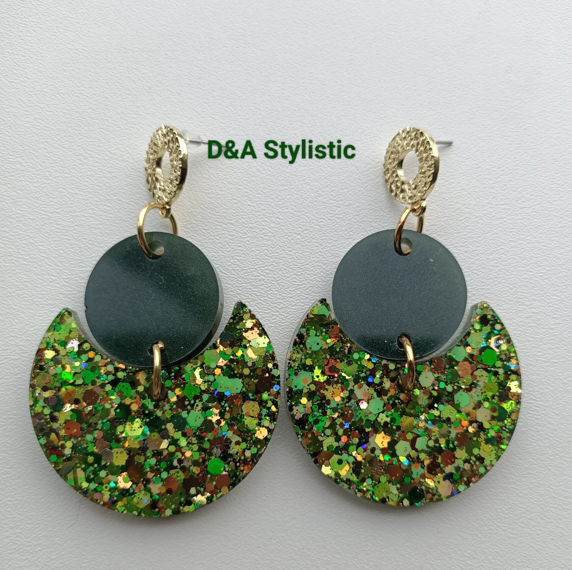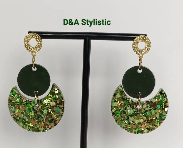 Prachtige oorbellen uit de serie Poison Ivy. Gemaakt van epoxy en hoog kwaliteit Limited Edition glitters van Glitter Queen.