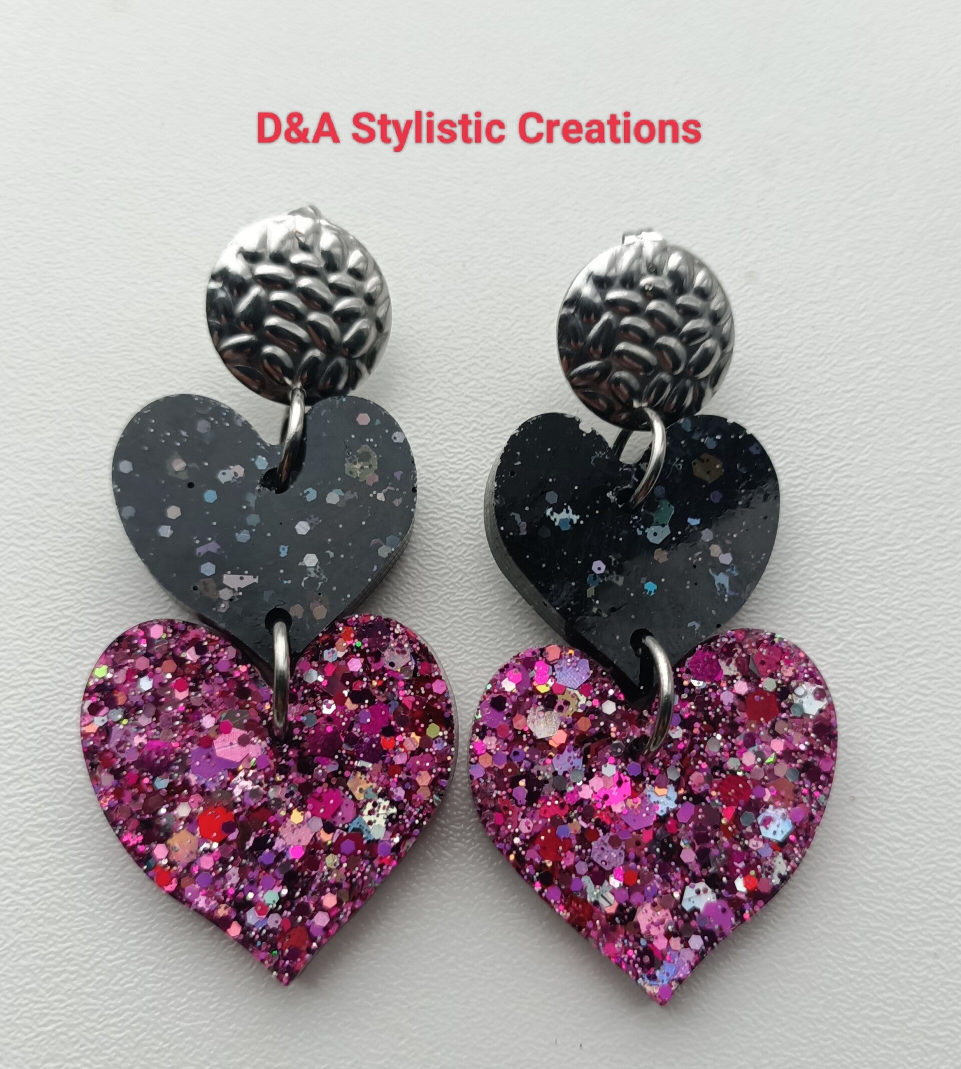 prachtige oorbellen gemaakt van epoxy en hoog kwaliteit glitters van Glitter Queen. Afgewerkt met RVS metalen onderdelen.