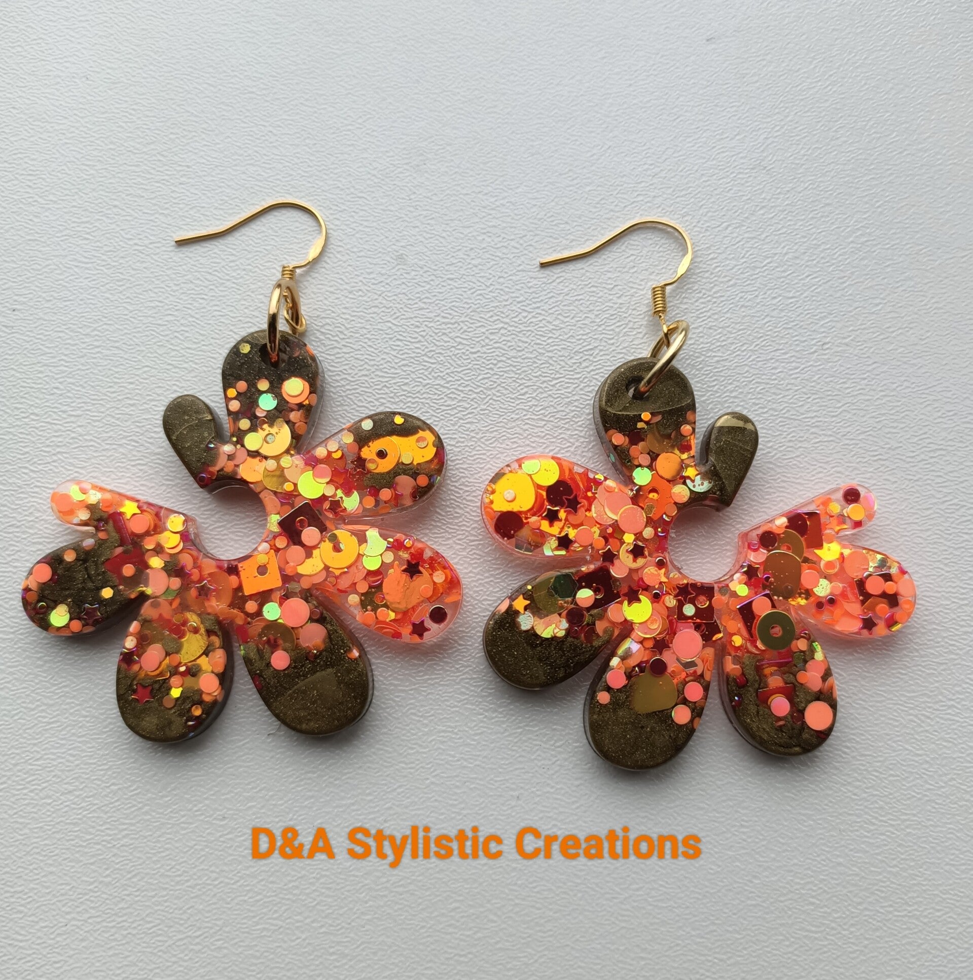 Prachtige oorbellen gemaakt van epoxy en hoog kwaliteit glitters van Glitter Queen (limited edition Halloween glitters)