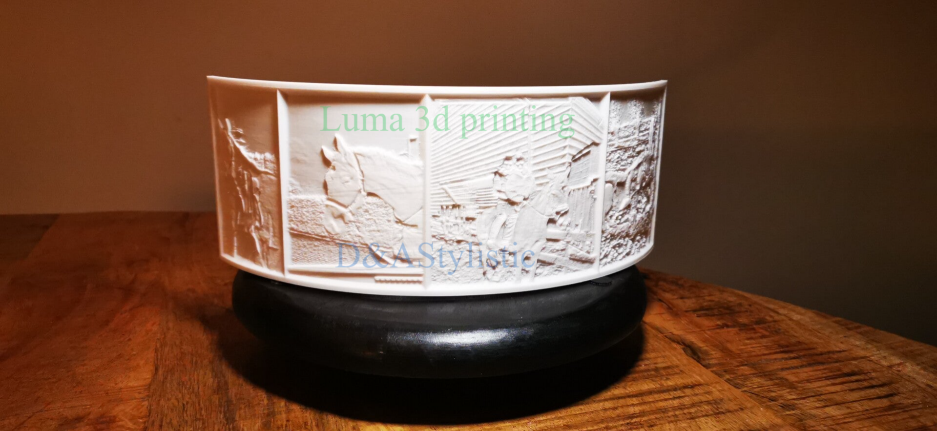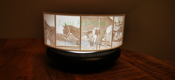Een gebogen foto met oplaadbare verlichting, hier is de mogelijkheid tot 4 foto's naast elkaar. Omdat het gebogen is, komt het 3d effect van een lithofaan zeer goed naar boven voor levendige foto's.