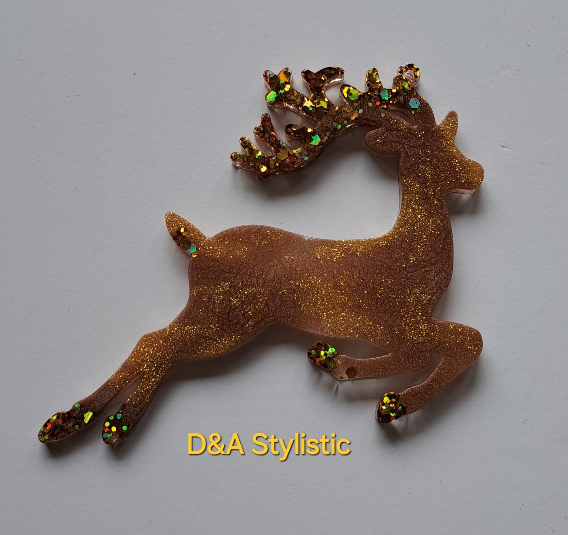 Een prachtige kersthanger van een hert gemaakt van epoxy en hoog kwaliteit glitters van Glitter Queen.