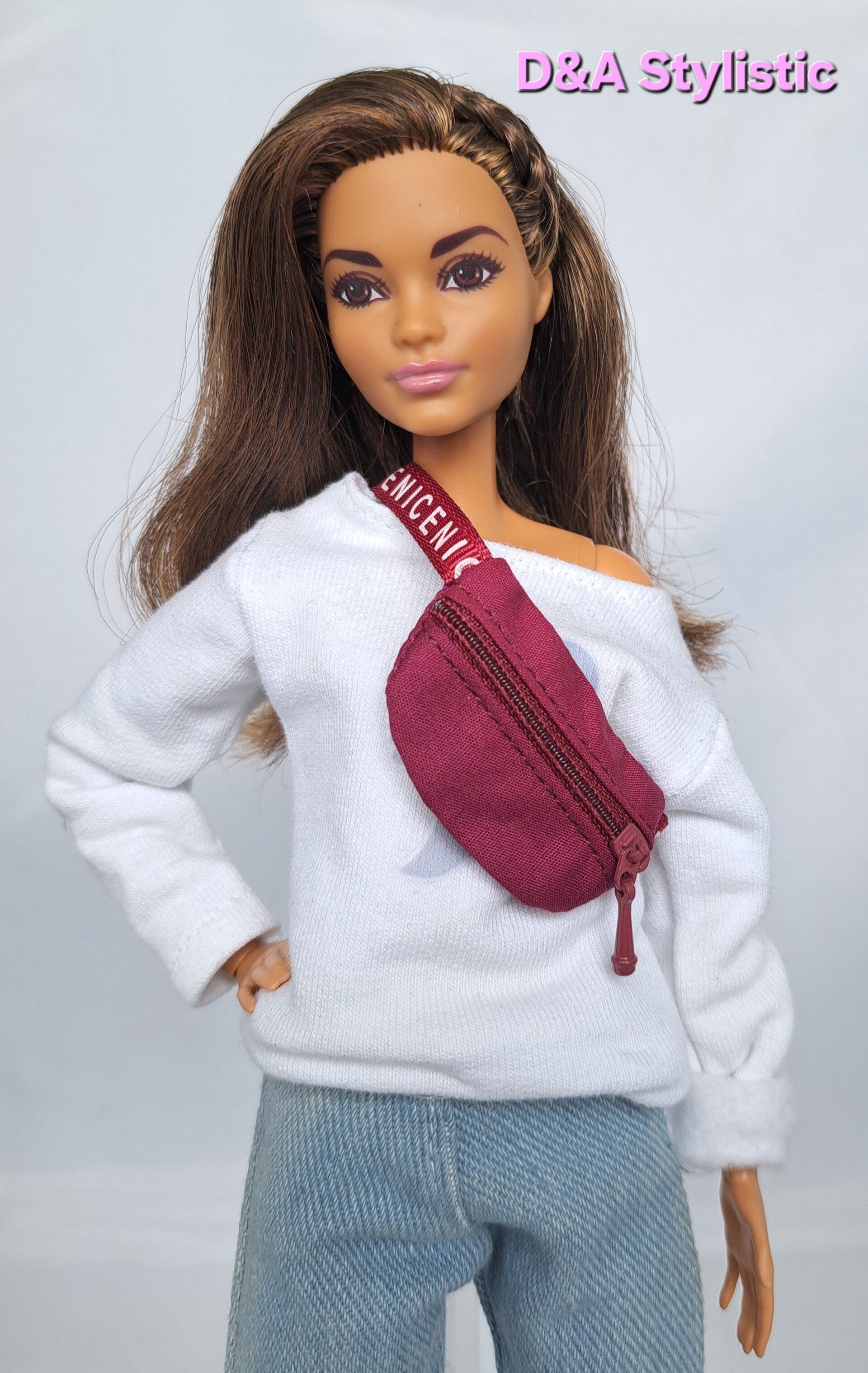 Een leuke heup of schoudertasje voor de 30/32 cm fashion doll's met een echte rits dat werkt.